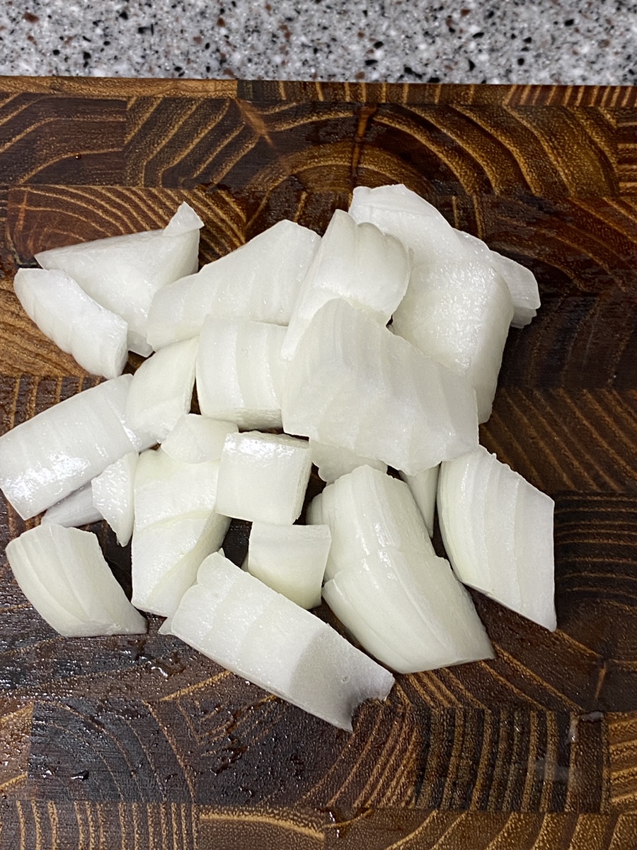 감자와 양파도 비슷한 크기로 깍둑썰기하여