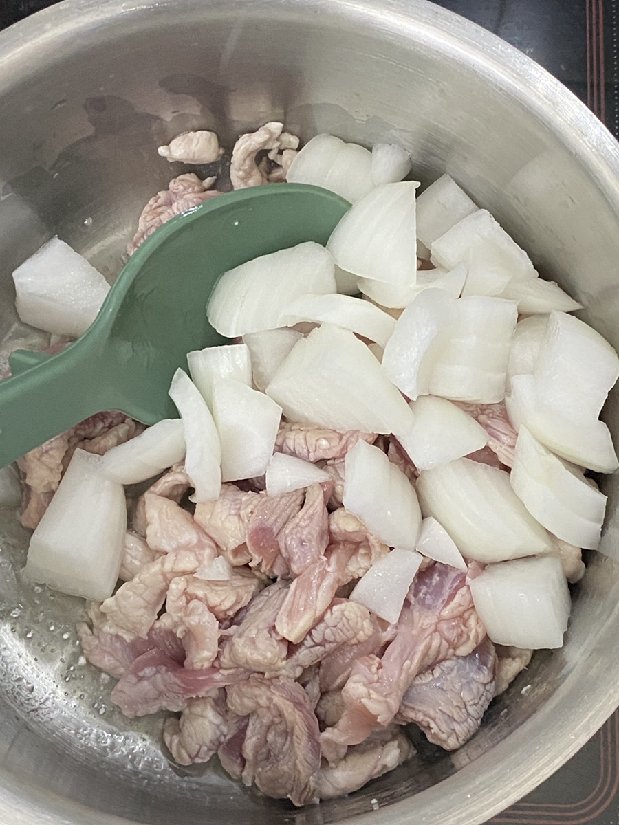 그러면 양파를 넣어서 살짝 투명해질 때까지