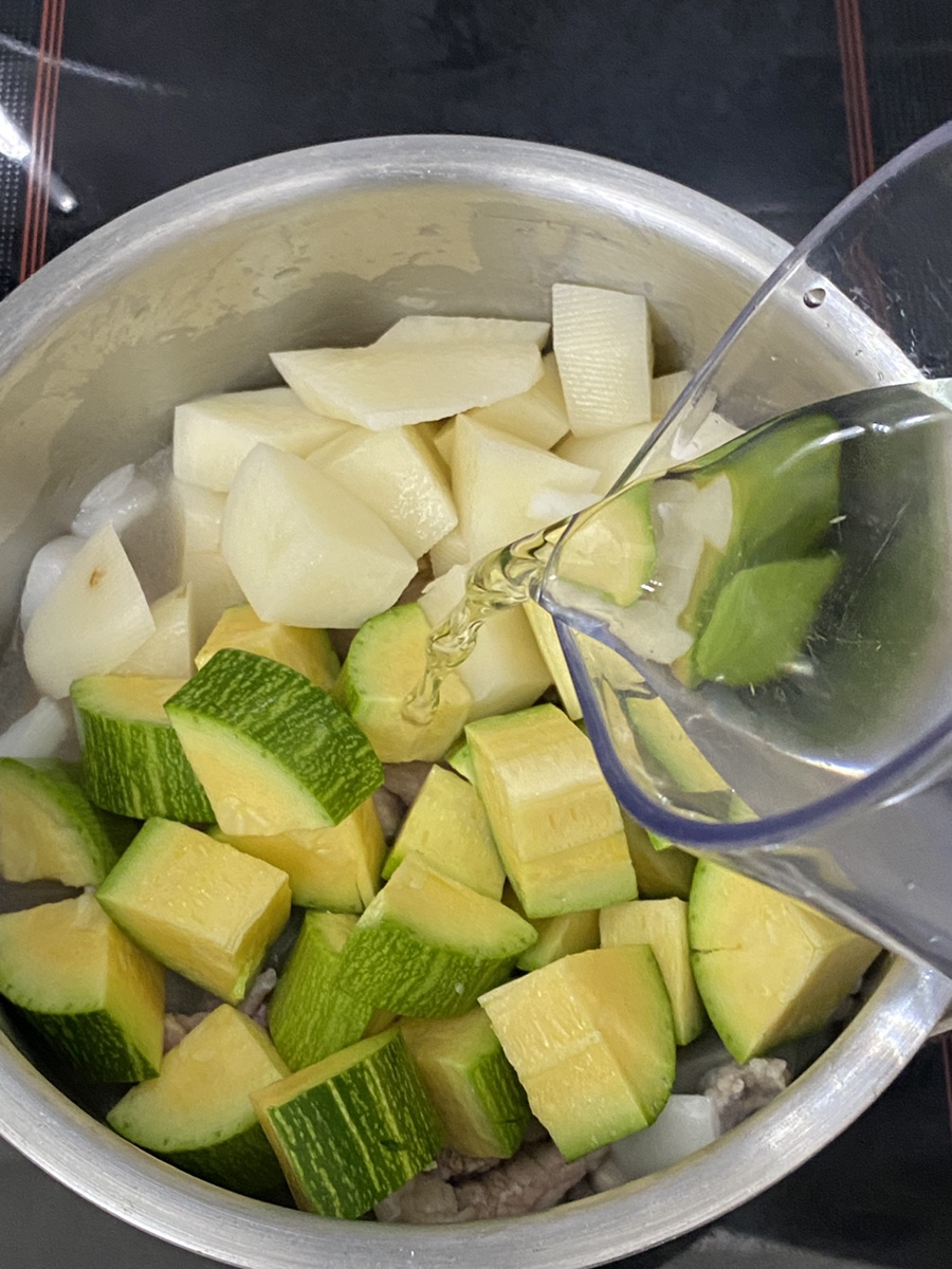 남은 채소(애호박/감자)를 다 넣고,