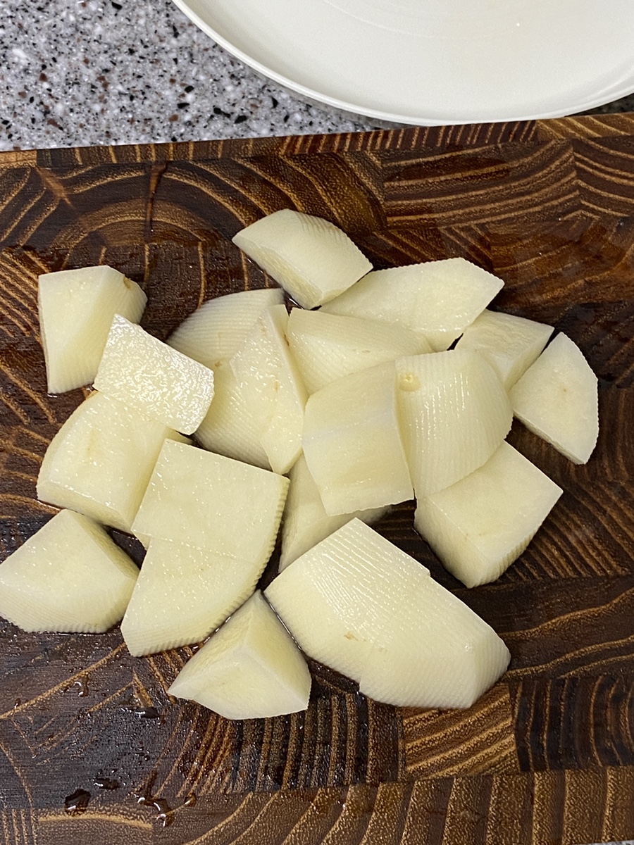 1.5cm 두께로 식감 있게 썰어주었습니다.