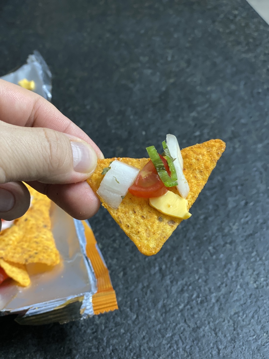 나초 한장에 여러 채소와 재료 다같이 올려서